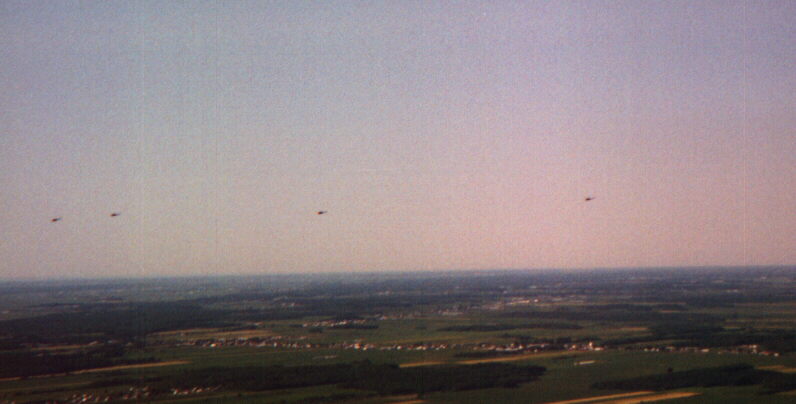 - A ma grande surprise, quatre hélicoptères se suivaient à la queue leu leu